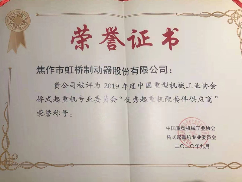 2020年10月14日,虹橋制動器股份有限公司在第六屆中國·長垣國際起重裝備博覽交易會上,憑借新穎的產(chǎn)品,獨特的做工技術,榮獲“優(yōu) 秀起重機配套件供應商”的稱號。