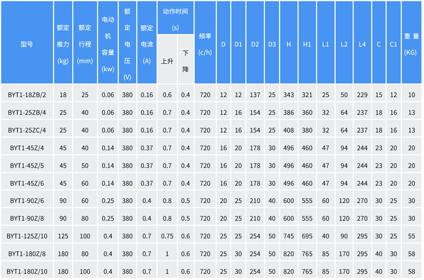 BYT1隔爆型電力液壓推動器適用于夾緊裝置、閥門、閘門、唧筒等的驅(qū)動和控制裝置。主要作為電力液壓鼓式制動器的松閘使用,也可通過各種形式的杠桿裝置做各種不同的運動。
