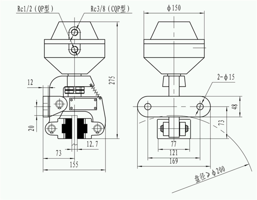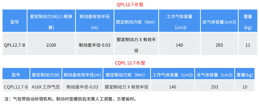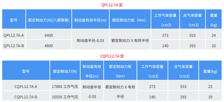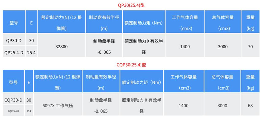 QP系列為彈簧制動,氣動釋放;CQP 系列為氣壓制動,彈簧釋放。