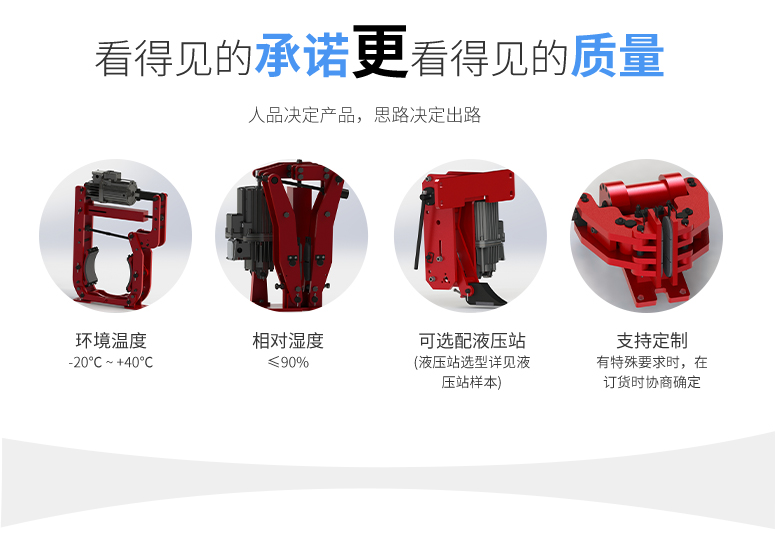 三、質(zhì)量過硬的主推產(chǎn)品公司以市場為導向,不斷開發(fā)培育新品種,開發(fā)推廣的優(yōu)良新品種有盤式制動器(安全制動器SB,SBD系列、電力液壓臂盤式Y(jié)PZ2系列、氣動鉗盤式QP(CQP)系列)、鼓式制動器(電力液壓YWZ系列、電磁鼓式ZWZ3系列、腳踏式TYW系列以及帶式制動器DZ系列)、防風制動器(液壓輪邊型YLBZ系列、頂軌式Y(jié)DGZ系列和夾軌器YJGQ系列)和驅(qū)動裝置(Ed系列、YT1系列和隔爆型BEd系列)。