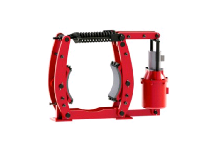 d)聯(lián)鎖式等退距裝置,使用過程中始終保持兩側瓦塊退距均等,避免因退距不均使一側制動襯墊浮貼制動輪的現(xiàn)象。